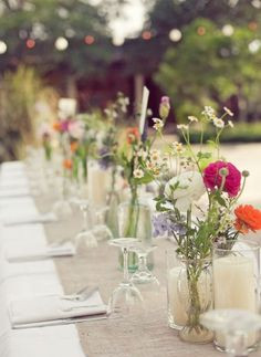 There are some fabulous companies who hire out some larger wooden decorations, such as @woodeshedeventhire, if you are looking for a statement birthday number or name. Equally, you can easily decorate your own garden, using wooden boards, simple bunting and sweetly made jars of flowers. You don’t need to be a pro florist to create these pretty little posies. Have a go, and you will be so proud of your little creations. You can also use simple flowers or herbs to decorate napkins at the table, plus adding candles to jars and vases adds to the twinkly affect.